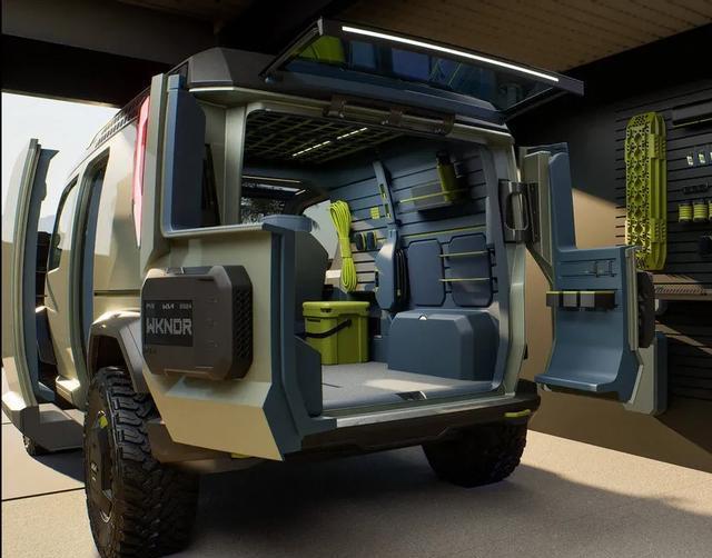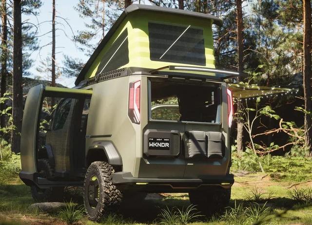 起亚汽车之前还基于PV5这款纯电VAN推出过一款PV5 WKNDR的原厂越野微型露营车,采用了升顶的设计,AT轮胎、前胶盘、定制化的小背包等等,内部大部分是可以拆卸的模块化套件。如果这款定制化的露营车也能够量产化,喜欢的用户还是比较多的。